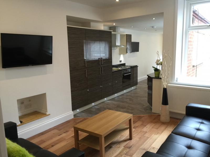 This 3 bedroom fully furnished apartment is situated in a superb location bordering Sandyford/Jesmond , 10 min walk to City Centre and Universities. The property has received a complete refurbishment and is beautifully designed and fitted out with high quality materials see the photos! This ultra modern 3 bedroom apartment is well situated and will suit professionals or Students The property has a Bespoke open plan Kitchen living area with Black Granite work tops and breakfast bar. The lounge area includes a led tv, wall lighting, Black Leather sofas and coffee table. Appliances include a built-in Oven/5-hob, Fridge Freezer, Dish Washer, Washer Dryer. The luxury Bathroom includes Spanish porcelain tiling with a designer suite with plenty of storage. Other features include Solid wood flooring, GCH, Double Glazing, Bar stools, All rooms wired for sky tv, lockable bedroom doors, economical led lighting throughout , Led TV's to lounge and kitchen, Built-in wardrobes, Double storage cupboard, Security Alarm, Carbon monoxide detector, Fire doors and Smoke detectors throughout the property. The double bedrooms include double beds and oak furniture. This property is outstanding and is highly recommended.